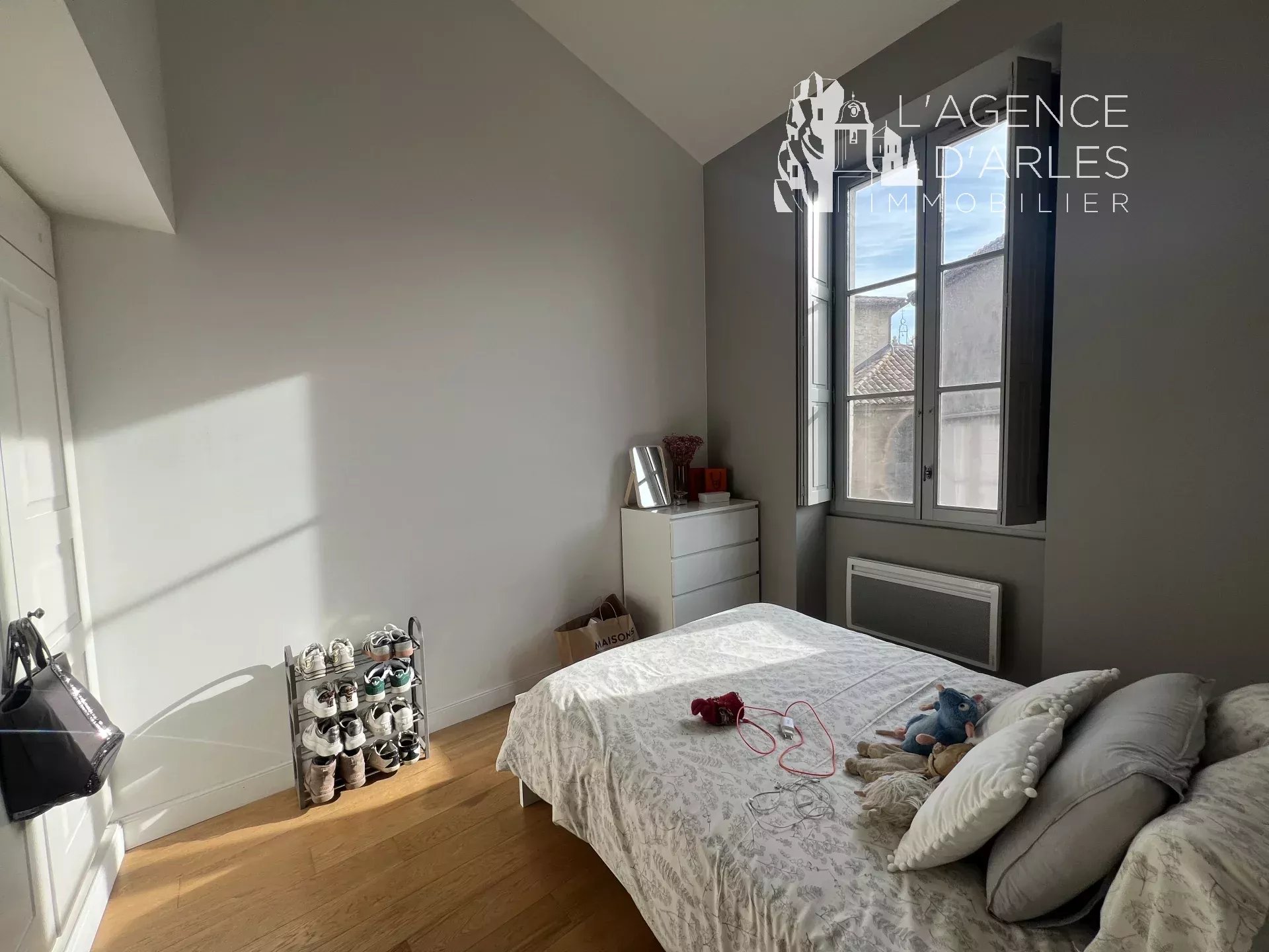 Set in a quiet location on the top floor of a magnificent period building renovated to a very high standard, this 43.75 m² apartment in the historic heart of Arles is in immaculate condition. Bright and comfortable, it boasts a C rating for energy and A for greenhouse gas emissions, making it ideal for seasonal or year-round rental. It features a kitchen, living room, shower room, separate toilet and bedroom with cupboards. Double-glazed wooden joinery. You'll appreciate the beauty of this secure building (digicode) with its terracotta floor tiles, spacious rooms and stone facade.
